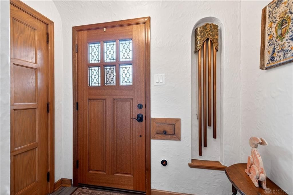 Gorgeous Tudor-style home with exceptional curb appeal, conveniently located to downtown, universities, shopping and highways, this is truly a must-see. Rich in character, the home showcases timeless Tudor details including vaulted ceilings with arched wooden beams and elegant plaster crown molding in the living room. A stunning arched window fills the great room with natural light, while the fireplace and intricately carved plaster hearth create a warm and inviting focal point.The dining room features two original built-in hutches with leaded glass and a charming vintage light fixture. The updated kitchen offers cherry cabinetry, stainless steel appliances, a double oven, newer dishwasher, and a convenient closet pantry. An expansive granite peninsula with seating makes it perfect for gathering and entertaining. The open family room flows seamlessly off the kitchen, a rare bonus for a home of this era, providing ideal everyday living space.A charming breezeway with additional arched windows and doors connects the home to the two-car garage and functions as a mudroom, but could easily serve as a cozy library nook. The first floor also includes a generously sized bedroom and a beautifully updated full bathroom with a tub/shower combination, offering a spa-like feel.Upstairs, you’ll find two large bedrooms with ample storage and closet space, along with another updated full bathroom. Major mechanical updates include a new HVAC system, adding comfort and efficiency.The lower level offers a spacious rec room with fireplace and stone accents, plus additional finished rooms perfect for a home office or exercise area. The walkout basement includes a third full bathroom, LVP flooring, has additional egress windows, and an EverDry waterproofing system with a lifetime transferable warranty.This unique and well-maintained home blends historic charm with modern updates... don’t miss your opportunity!
