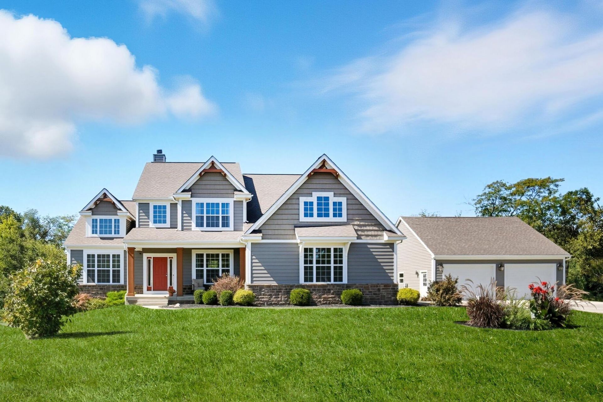 Beautiful lake community home featuring a dramatic two-story living room with vaulted ceilings and a cozy gas fireplace, seamlessly open to the kitchen and dining area. The kitchen is a chef's dream with granite countertops, 5- burner stove, double gas ovens, a large island with a microwave convection oven, and pantry. The spacious owners suite is conveniently located on the first floor along with an office, half bath, laundry room, and mudroom off the 2 car attached garage. Upstairs you will find a versatile loft area along with 2 generously sized bedrooms connected by a Jack-and-Jill bathroom. The walkout basement has a family/rec room with a bar, full bath, possible 4th bedroom and plenty of storage. The impressive oasis in the backyard includes 20X24 concrete patio complete with a hot tub and a 16X12 pavilion, a 30x15x54 above-ground pool, and fire pit with sitting area. Additional highlights include a massive 32X32 detached garage/shop offering plenty of space for storage, hobbies, or workspace.